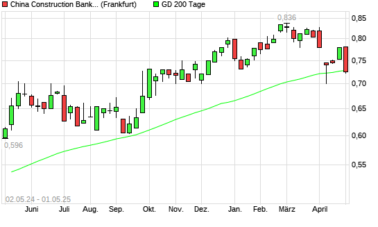 Mit dem Rücksetzer auf 0,73 EUR hat die China Construction Bank-Aktie am 30.04.2025 die 200-Tage-Linie nach unten gekreuzt.