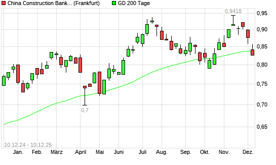 Mit dem Rücksetzer auf 0,83 EUR hat die China Construction Bank-Aktie am 09.12.2025 die 200-Tage-Linie nach unten gekreuzt.Die China Construction Bank-Aktie befand sich seit dem 14.10.2025 ...weiterlesen