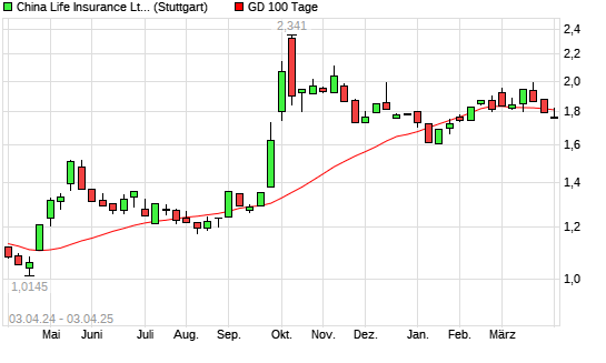 Mit dem Anstieg auf 1,82 EUR hat die China Life Insurance-Aktie am 02.04.2025 die 100-Tage-Linie nach oben gekreuzt.
