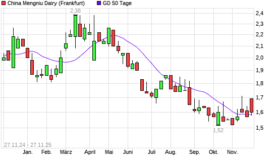 Mit dem Anstieg auf 1,65 EUR hat die China Mengniu Dairy-Aktie am 26.11.2025 die 50-Tage-Linie nach oben gekreuzt.