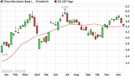Mit dem Rücksetzer auf 5,37 EUR hat die China Merchants Bank-Aktie am 17.12.2025 die 100-Tage-Linie nach unten gekreuzt.Die China Merchants Bank-Aktie befindet sich seit ...weiterlesen
