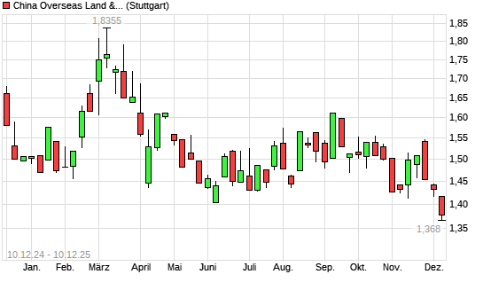 Mit dem Rücksetzer auf 1,37 EUR hat die China Overseas Land & Investment-Aktie (ISIN HK0688002218) am 09.12.2025 ein neues 12-Monats-Tief erreicht und damit den Kurs vom 06.11.2025 eingestellt.