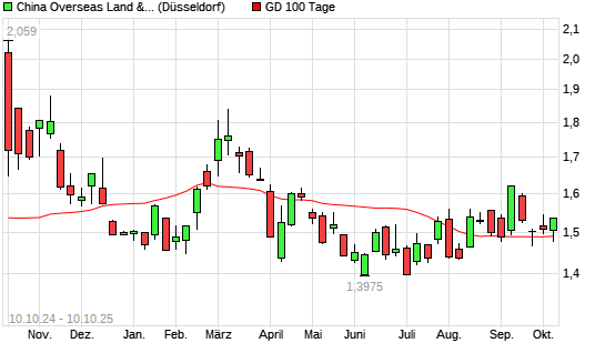Mit dem Anstieg auf 1,51 EUR hat die China Overseas Land & Investment-Aktie am 09.10.2025 die 100-Tage-Linie nach oben gekreuzt.