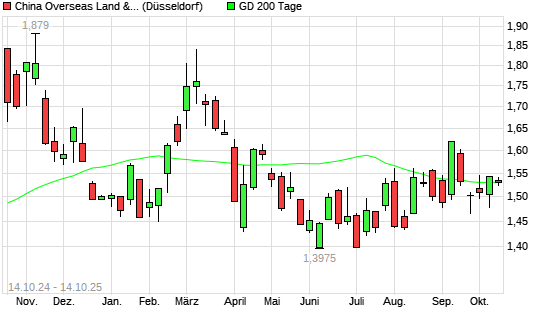 Mit dem Anstieg auf 1,55 EUR hat die China Overseas Land & Investment-Aktie am 13.10.2025 die 200-Tage-Linie nach oben gekreuzt.