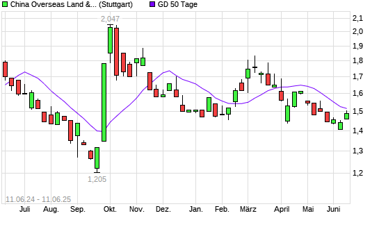 Mit dem Anstieg auf 1,53 EUR hat die China Overseas Land & Investment-Aktie am 10.06.2025 die 50-Tage-Linie nach oben gekreuzt.