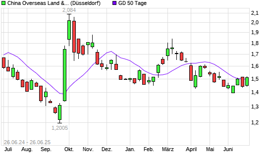 Mit dem Anstieg auf 1,56 EUR hat die China Overseas Land & Investment-Aktie am 25.06.2025 die 50-Tage-Linie nach oben gekreuzt.