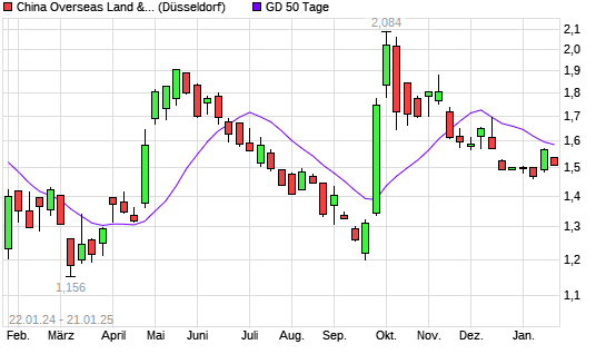 Mit dem Rücksetzer auf 1,53 EUR hat die China Overseas Land & Investment-Aktie am 20.01.2025 die 50-Tage-Linie nach unten gekreuzt.