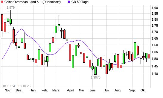 Mit dem Rücksetzer auf 1,51 EUR hat die China Overseas Land & Investment-Aktie am 17.10.2025 die 50-Tage-Linie nach unten gekreuzt.
