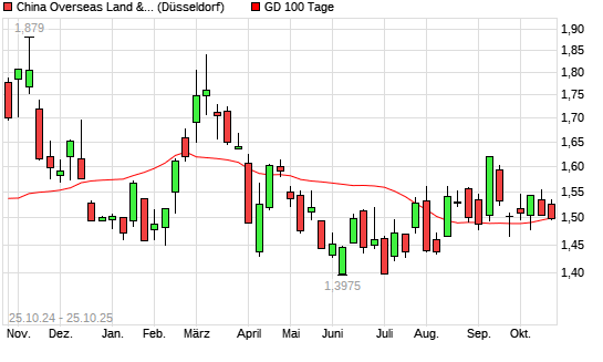 Mit dem Rücksetzer auf 1,50 EUR hat die China Overseas Land & Investment-Aktie am 24.10.2025 die 100-Tage-Linie nach unten gekreuzt.Die China Overseas Land & Investment-Aktie befindet ...weiterlesen