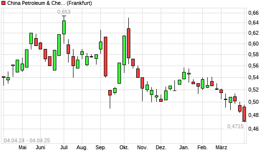 Mit dem Rücksetzer auf 0,48 EUR hat die China Petroleum & Chemical-Aktie (ISIN CNE1000002Q2) am 03.04.2025 ein neues 12-Monats-Tief erreicht und damit den Kurs vom 02.04.2025 eingestellt.