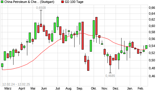 Mit dem Anstieg auf 0,54 EUR hat die China Petroleum & Chemical-Aktie am 11.02.2025 die 100-Tage-Linie nach oben gekreuzt.