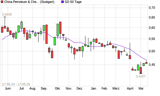 Mit dem Rücksetzer auf 0,45 EUR hat die China Petroleum & Chemical-Aktie am 16.05.2025 die 50-Tage-Linie nach unten gekreuzt.