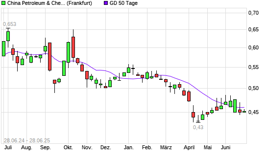 Mit dem Rücksetzer auf 0,45 EUR hat die China Petroleum & Chemical-Aktie am 27.06.2025 die 50-Tage-Linie nach unten gekreuzt.