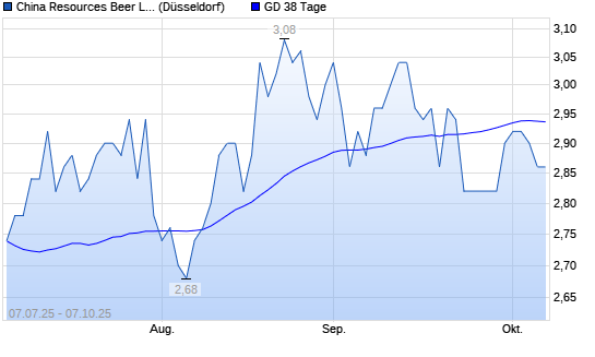 Mit dem Anstieg auf 3,00 EUR hat die China Resources Beer-Aktie am 06.10.2025 die 38-Tage-Linie nach oben gekreuzt.