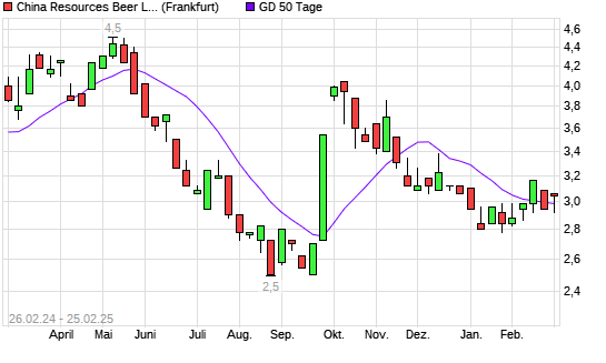 Mit dem Anstieg auf 3,06 EUR hat die China Resources Beer-Aktie am 24.02.2025 die 50-Tage-Linie nach oben gekreuzt.