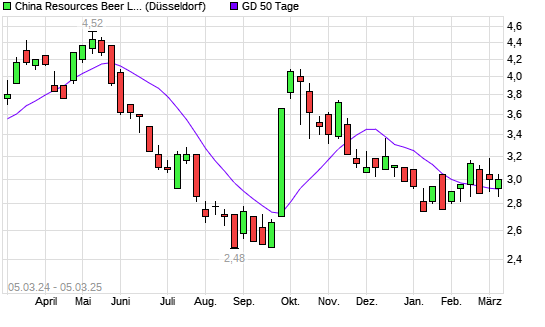 Mit dem Anstieg auf 3,06 EUR hat die China Resources Beer-Aktie am 04.03.2025 die 50-Tage-Linie nach oben gekreuzt.