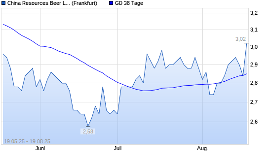 Mit dem Rücksetzer auf 2,84 EUR hat die China Resources Beer-Aktie am 18.08.2025 die 38-Tage-Linie nach unten gekreuzt.