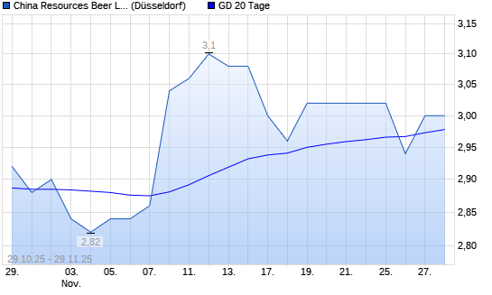 Mit dem Anstieg auf 3,04 EUR hat die China Resources Beer-Aktie am 28.11.2025 die 20-Tage-Linie nach oben gekreuzt.Die China Resources Beer-Aktie befindet sich seit dem 10.11.2025 im langfristigen ...weiterlesen