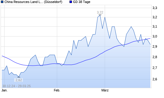Mit dem Anstieg auf 3,08 EUR hat die China Resources Land-Aktie am 28.03.2025 die 38-Tage-Linie nach oben gekreuzt.