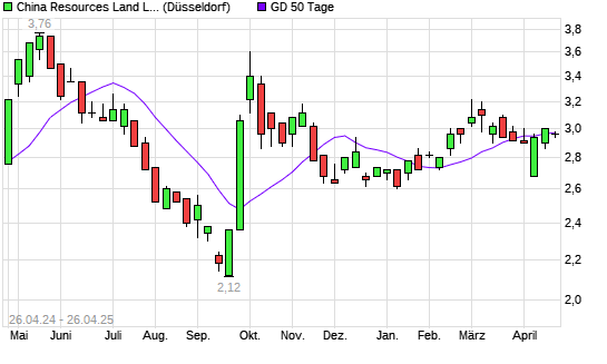 Mit dem Anstieg auf 3,12 EUR hat die China Resources Land-Aktie am 25.04.2025 die 50-Tage-Linie nach oben gekreuzt.