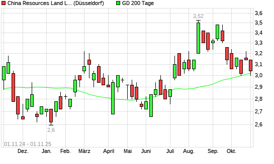 Mit dem Rücksetzer auf 3,06 EUR hat die China Resources Land-Aktie am 31.10.2025 die 200-Tage-Linie nach unten gekreuzt.