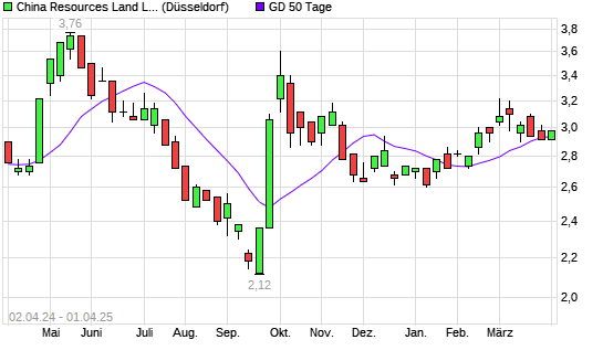 Mit dem Rücksetzer auf 2,94 EUR hat die China Resources Land-Aktie am 31.03.2025 die 50-Tage-Linie nach unten gekreuzt.