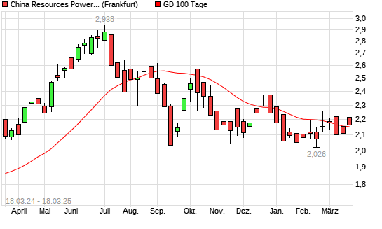 Mit dem Anstieg auf 2,20 EUR hat die China Resources Power Holding-Aktie am 17.03.2025 die 100-Tage-Linie nach oben gekreuzt.