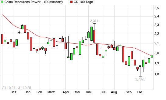 Mit dem Anstieg auf 2,05 EUR hat die China Resources Power Holding-Aktie am 30.10.2025 die 100-Tage-Linie nach oben gekreuzt.
