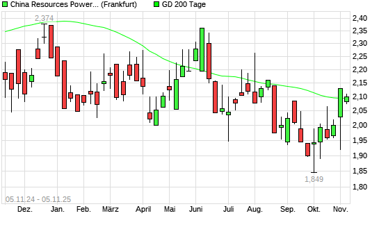 Mit dem Anstieg auf 2,10 EUR hat die China Resources Power Holding-Aktie am 04.11.2025 die 200-Tage-Linie nach oben gekreuzt.
