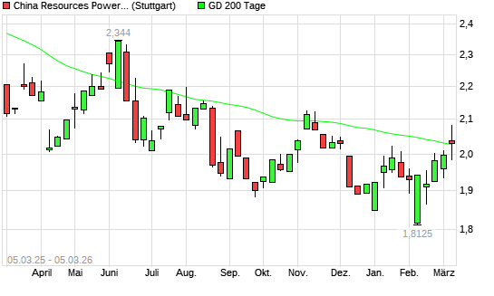 Mit dem Rücksetzer auf 2,00 EUR hat die China Resources Power Holding-Aktie am 04.03.2026 die 200-Tage-Linie nach unten gekreuzt.
