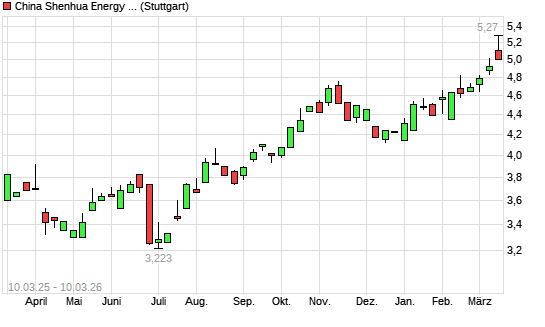 Mit dem Anstieg auf 5,13 EUR hat die China Shenhua Energy-Aktie (ISIN CNE1000002R0) am 09.03.2026 ein neues All-Time-High erreicht und damit den Kurs vom 04.03.2026 eingestellt.Die ...weiterlesen