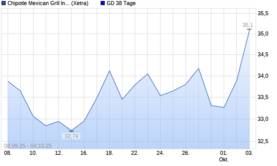 Mit dem Anstieg auf 35,37 EUR hat die Chipotle Mexican Grill-Aktie am 03.10.2025 die 38-Tage-Linie nach oben gekreuzt.