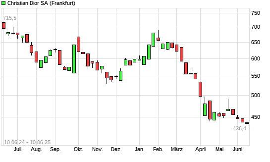 Mit dem Rücksetzer auf 436,40 EUR hat die Christian Dior-Aktie (ISIN FR0000130403) am 09.06.2025 ein neues 3-Jahres-Tief erreicht und damit den Kurs vom 06.06.2025 eingestellt.
