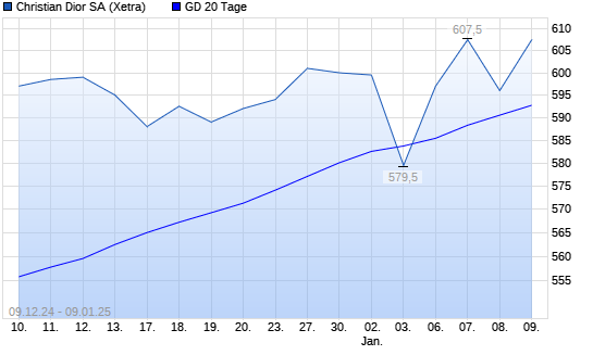Mit dem Anstieg auf 603,00 EUR hat die Christian Dior-Aktie am 08.01.2025 die 20-Tage-Linie nach oben gekreuzt.