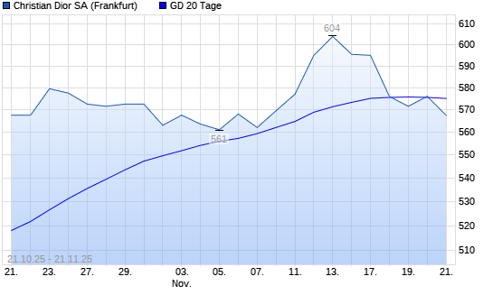 Mit dem Anstieg auf 576,00 EUR hat die Christian Dior-Aktie am 20.11.2025 die 20-Tage-Linie nach oben gekreuzt.