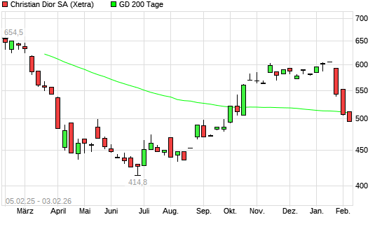 Mit dem Rücksetzer auf 494,60 EUR hat die Christian Dior-Aktie am 04.02.2026 die 200-Tage-Linie nach unten gekreuzt.