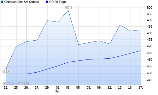 Mit dem Anstieg auf 486,40 EUR hat die Christian Dior-Aktie am 16.09.2025 die 20-Tage-Linie nach oben gekreuzt.Die Christian Dior-Aktie befindet sich seit dem 06.03.2025 im langfristigen Abwärtstrend ...weiterlesen