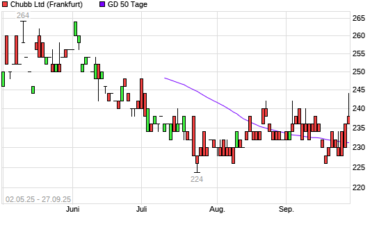 Mit dem Anstieg auf 236,00 EUR hat die Chubb-Aktie am 26.09.2025 die 50-Tage-Linie nach oben gekreuzt.