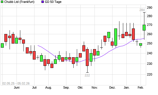 Mit dem Anstieg auf 284,00 EUR hat die Chubb-Aktie am 04.02.2026 die 50-Tage-Linie nach oben gekreuzt.
