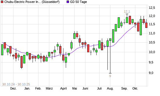 Mit dem Rücksetzer auf 11,50 EUR hat die Chubu Electric Power-Aktie am 29.10.2025 die 50-Tage-Linie nach unten gekreuzt.