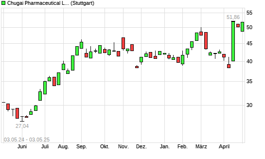 Mit dem Anstieg auf 52,04 EUR hat die Chugai Pharmaceutical-Aktie (ISIN JP3519400000) am 02.05.2025 ein neues All-Time-High erreicht und damit den Kurs vom 21.04.2025 eingestellt.