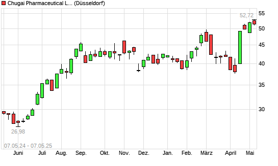 Mit dem Anstieg auf 52,46 EUR hat die Chugai Pharmaceutical-Aktie (ISIN JP3519400000) am 06.05.2025 ein neues All-Time-High erreicht und damit den Kurs vom 05.05.2025 eingestellt.