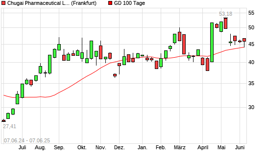 Mit dem Anstieg auf 45,87 EUR hat die Chugai Pharmaceutical-Aktie am 06.06.2025 die 100-Tage-Linie nach oben gekreuzt.