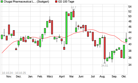 Mit dem Anstieg auf 41,25 EUR hat die Chugai Pharmaceutical-Aktie am 09.10.2025 die 100-Tage-Linie nach oben gekreuzt.