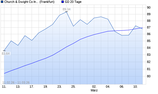 Mit dem Anstieg auf 87,24 EUR hat die Church & Dwight-Aktie am 10.03.2026 die 20-Tage-Linie nach oben gekreuzt.