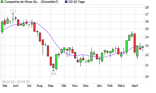 Mit dem Anstieg auf 13,00 EUR hat die Cia de Minas Buenaventura-Aktie am 22.04.2025 die 50-Tage-Linie nach oben gekreuzt.
