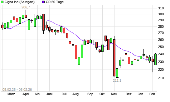Mit dem Anstieg auf 237,50 EUR hat die Cigna-Aktie am 04.02.2026 die 50-Tage-Linie nach oben gekreuzt.