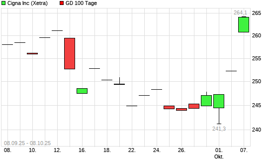Mit dem Rücksetzer auf 258,15 EUR hat die Cigna-Aktie am 07.10.2025 die 100-Tage-Linie nach unten gekreuzt.
