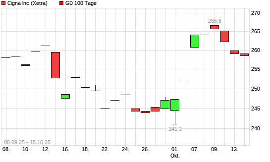 Mit dem Rücksetzer auf 253,70 EUR hat die Cigna-Aktie am 14.10.2025 die 100-Tage-Linie nach unten gekreuzt.
