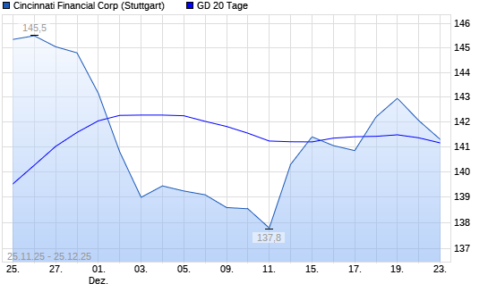 Mit dem Anstieg auf 141,45 EUR hat die Cincinnati Financial-Aktie am 24.12.2025 die 20-Tage-Linie nach oben gekreuzt.
